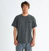 着心地の良い膨らみを持つ空紡糸を使用したUSコットン天竺素材の半袖Tシャツ。ピグメント加工を施すことで、ユーズド感を出しソフトな肌触りに仕上げました。左胸と背中にはトレンドを加味したフォントのグラフィックを刺繍とラバープリントで表現。シルエットは汎用性の高いレギュラーフィット。