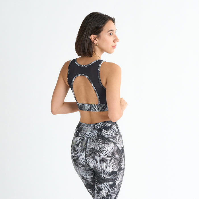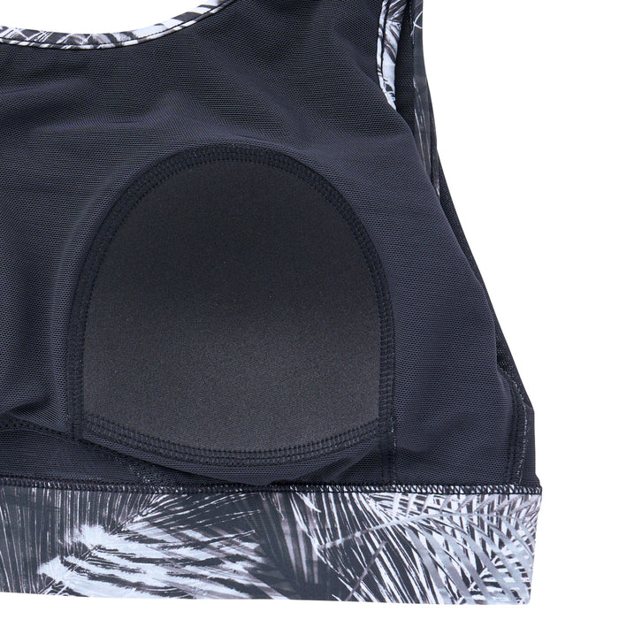 フロント胸下とバック全面にパワーメッシュを使用したデザイン性の高いハイサポートブラトップ。背中を広くカットしたデザインがインパクトをプラスします。メッシュ仕様なので通気性がよく、涼しく着こなせます。パッドは一体型なので、ずれる心配もありません。水陸両用、速乾機能付き。