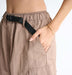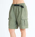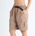 ワッシャー素材のカーゴハーフパンツ。ワイドシルエットでウエストにはバックルベルト、スラッシュポケットとカーゴポケットを搭載し、メンズライクな雰囲気に仕上げました。カーゴポケットには水抜き、袋布にはメッシュを採用。カーゴポケットにROXYハートを刺繍であしらいました。