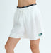 ロゴのジャガードゴムをアクセントにしたダブルウエストのデザインのボートショーツです。コットンライクで軽く柔らかな素材感で着やすいショーツです。裾にはヘリテージロゴのワッペンをあしらいました。股下10cmの着丈です。UVカット、速乾、塩素対応です。WHTボディには裏地がつきます。