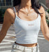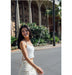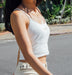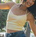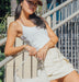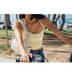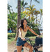ホルターネックのビキニとキャミソールがレイヤードしたようなデザインが特徴の一着。カップ付きの仕様なので一着で完結できるのも魅力。インナーと同色のROXYロゴの刺繍をフロントにあしらいました。レイヤード感や丈感などもよく、ハイウエストボトムとの相性抜群なアイテムに仕上がりました。