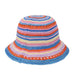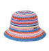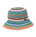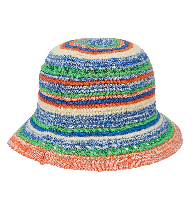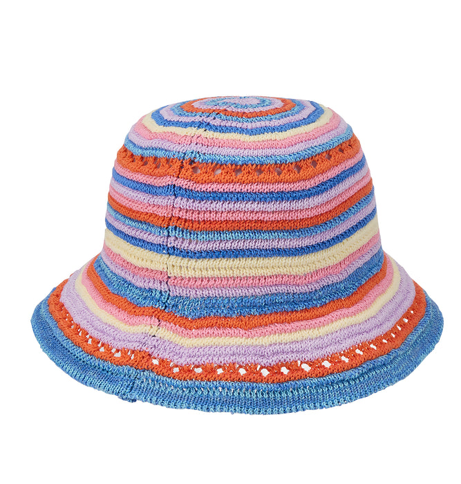 洗える素材のポリエステルニットを使用した、透かし編みのカラフルボーダーハット。型崩れしにくい素材を使用しているので、持ち運びに便利です。ワンピースを合わせてカジュアルダウンしたり、シンプルなTシャツに合わせてアクセントにしてもぴったり。ビーチファッションにもタウンコーデにもシーンを問わずマッチします。