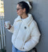 ラグラン切り替えで、肩周りのすっきり見せを叶えたダウンジャケット。大きめの襟はスタンドカラーとしても、折り返して着てもかわいいシルエット。裾はドローコード付きなので、絞ってフォルムを変えて着こなせます。ポケットの袋布は起毛素材で仕上げたのであたたかいです。ミニ丈ボトムと合わせて着たくなるデザインです。