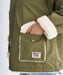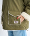 ポリエステルナイロンの表地とボアの裏地のリバーシブルジャケット。表地は撥水加工。フロントポケットにはオリジナルのネームを叩き付け、ボアはオフホワイトで、ポケット口だけ表地と同生地を使用しています。袖や襟を折り返してボアをちらっと見せる着こなしもおすすめ。ジップアップのスタンドカラーで、裾にはアジャスター付きのゴム仕様なので、シルエットの変化も楽しめます。