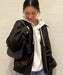 マットな質感とムラ感にこだわり、リアルな質感に仕上げたエコレザージャケットは、ポリエステルの裏地付きの仕様。オーバーサイズなので、ボリュームトップスの上に羽織れるのが高ポイント!合わせやすいブラックとブラウンの2色展開です。フロントのフラップポケットにはROXYハートを、左袖口にはメッセージを刺繍しています。