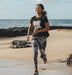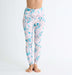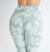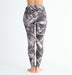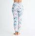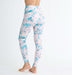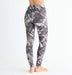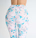 シーズン柄を使用したレギンス。脇をシームレスにすることで縫い目の肌あたりを軽減し、リラックスしたはき心地を実現しました。前後のウエストの切り替えをVラインにすることで、ヒップもウエストもすっきりとしたシルエットに。同柄のブラトップとセットアップで着用可能。水陸両用で、速乾機能付き。