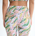 シーズン柄を使用したレギンス。脇をシームレスにすることで縫い目の肌あたりを軽減し、リラックスしたはき心地を実現しました。前後のウエストの切り替えをVラインにすることで、ヒップもウエストもすっきりとしたシルエットに。同柄のブラトップとセットアップで着用可能。