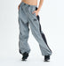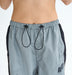 光沢のある生地を使用した、ボリューミーなシルエットのパラシュートパンツ。GRYは落ち着いたトーンの色合いでシルバーライクに見えるのが特徴。パイピングを添えたサイドラインがアクセントに。裾のアジャスターでシルエットを調整し、2WAYの着こなしが楽しめます。膝に入れたタックで、動きやすさも抜群。ブラトップと合わせたコーディネートがおすすめです。ウエストにはコードを取り付け、表に出るようにデザインしています。撥水加工付き。