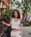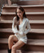 ・コンパクトな美シルエットにこだわった彼女らしいベロアのホットパンツ。
