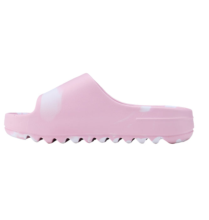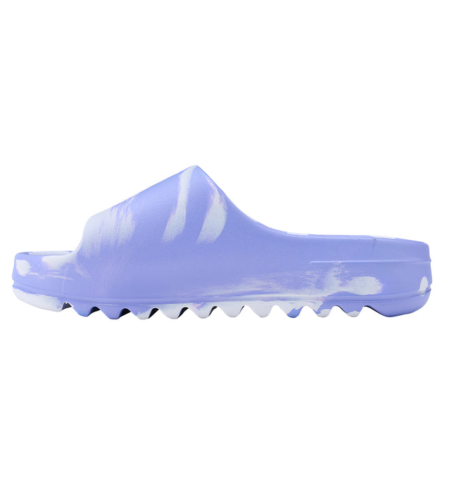 クッションの効いたボリュームソールが特徴のコンフォートサンダル。さらにクッション性の良い素材に生まれ変わり、履き心地の良さもさらにアップしました。アーチサポートで足を包み込んでくれます。フットベッドには植物をイメージしたパターンを凸凹で入れました。一体成型のたっぷりとした厚底は、トレンド感もありスタイルアップも叶えてくれます。水切れがよいので、水辺での着用にぴったりです。LAVとPNKのマーブルは 1足ずつ柄の出方が変わります。