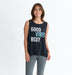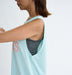 2種類のプリント技法を組み合わせ、カラフルでアクティブな印象のメッセージロゴがインパクトのあるタンクトップ。アームホールはゆったりめ、前後差のある着丈で後ろ裾はラウンドカットのデザイン。水陸両用なので、水着のカバーアップとしてもおすすめです。速乾・UVカット機能付き。後ろ裾にはリフレクタープリントをあしらいました。