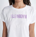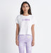 フロントのボックスロゴに、シリーズの同柄をあしらっているので、レギンスや、インナーにタンクトップを合わせたリンクコーデが楽しめるクロップドTシャツ。短めの袖なので、スッキリとした印象で着こなせます。バックネックにネーム付き。速乾、UVカット機能付き。