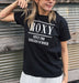 レギュラーフィットシルエットのTシャツ。フロントに入れたシーズンメッセージのロゴプリントのグラフィックが主役です。シンプルなデザインだからどんなボトムともコーディネートしやすいので、ベーシックアイテムとして持っていたい一着です。