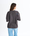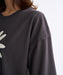 フロントに大きな立体感のあるフラワーモチーフの刺繍をあしらった、クルーネックTシャツ。ドロップショルダーで身幅広めのゆったりしたシルエット。ドロップショルダーで身幅広めのゆったりしたシルエット。バックショルダーにはメッセージグラフィックの刺繍を施しポイントにしました。秋の始まりに、少し冬の雰囲気を感じられる温かみのあるデザインです。袖口はリブの仕様です。