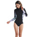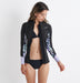 体温低下と日焼けを防ぐ着脱も簡単なフロントジップのロングスリーブジャケット。日本の水温を考慮した2mmの生地厚と、パーツ接合部からの水の侵入を防ぐすくい縫い縫製仕様の設計で、安心の保温性も確保。型紙は日本製で運動性と着心地も抜群のジャパンフィットです。また、海外トップクラスの超軽量伸縮エコ素材で構成されていて、ジャージとネオプレンゴムのラミネートには水性糊(AQUAα)を使用。環境に優しいだけでなく、しなやかな伸縮性と快適な着用感を両立させパフォーマンスにも優れています。縫製始末部分の糊補強や接合部交差部分の裏側テープ補強など、丈夫で壊れにくいジャパンスペック以上の安心の設計。同じウェットスーツ素材のパンツやロングジョンとのセットアップで、フルスーツとしてのスタイルも好評です。※こちらの商品は1点1点柄の見え方が異なりますので予めご了承下さい。