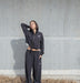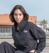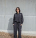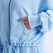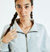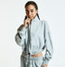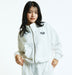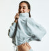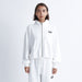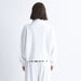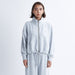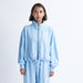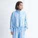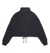 ショート丈のスタンドスリーブZIPトップ。同シリーズのオーバーサイズのスエットボトムとコーディネートするのがおすすめの着こなし。裾に付いたドローコードを絞ることで、着丈の調節ができるので、肌のチラ見せなども楽しめます。また、ZIPを開けてスタンドを折って襟のように着るのも◎。フロントにはカンガルーポケット、胸元にはサターンロゴをあしらいました。
