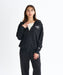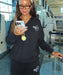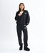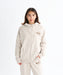もっちりとした質感の裏毛素材を使ったジップアップフーディ。ドロップショルダーで腰までカバーする着丈のゆったりとしたシルエットです。ショルダーの切り替え部分と襟元は同色の表ぶりステッチで仕上げました。襟に高さのあるデザインなので、フードを被ったときに首元が空かないのもポイント。左胸にはフロッキープリントでROXYロゴのグラフィックをあしらいました。同素材のボトムとセットアップでのコーディネートもおすすめです。カンガルーポケット付き。
