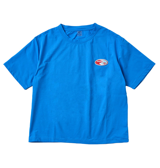 乾きやすいのが特徴のコットン見えする素材のラッシュTシャツ。胸元にはヘリテージロゴのワッペンを付けました。リンクデザインの水着とのセットでの着用もおすすめ。TOPSの使えるアイテムです。水陸両用、UVカット、速乾、塩素対応です。