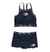 細めのリブ素材で、ヘリテージロゴをキーモチーフにした、レトロ感のあるスポーティなサーフスタイルのスイムウエア。アメリカンスリーブのYバックシルエットのタンキニは、ワッペンのカラーとマッチさせたパイピングが特徴で、ボトムはボーイレッグショーツで動きやすく仕上げました。バスト下とウエストにはROXYのジャガードゴムを採用。サーフィンをするときにもおすすめです。130cm以上には取り外し可能なパッドが付いています。